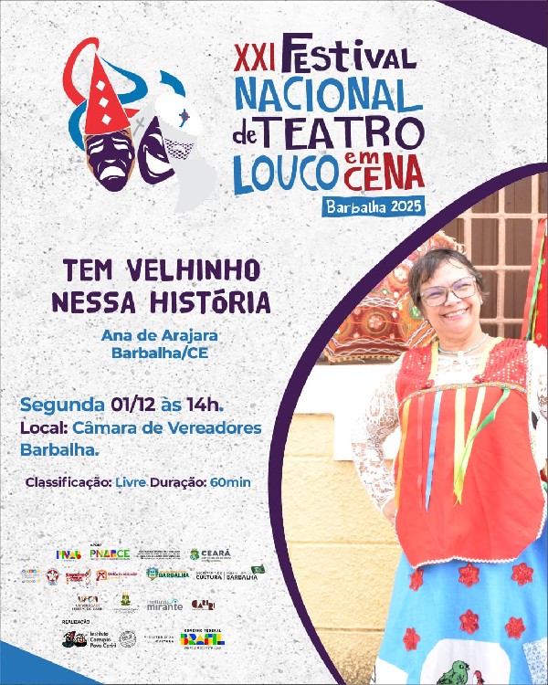 14h00: Espetáculo Teatral | Tem Velhinho Nessa História (Ana de Arajara - Barbalha/CE).