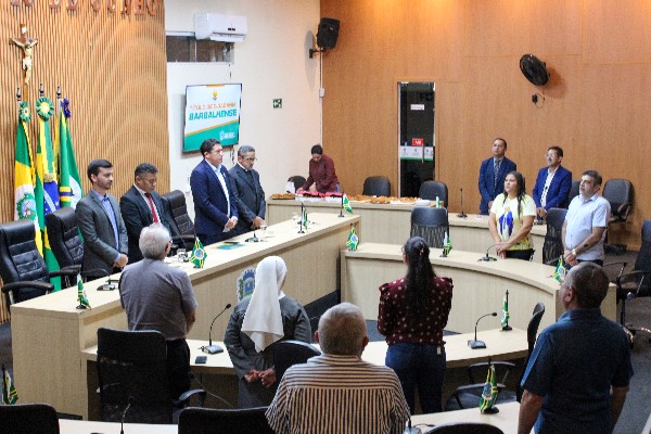 A Câmara Municipal de Barbalha realizou, na noite desta segunda-feira (27), uma sessão solene no plenário da casa para a entrega do Título de Cidadania barbalhense ao Padre Luciano Virgulino Coêlho.