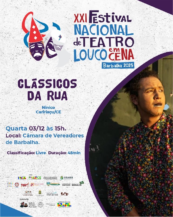 15h00: Espetáculo Teatral | Clássicos da Rua (Ninico - Caririaçu/CE).