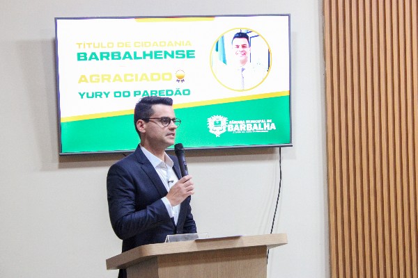 Em seu discurso de agradecimento, o deputado federal Yury do Paredão ressaltou a alegria em receber a homenagem e reafirmou seu compromisso de continuar trabalhando e destinando recursos para o desenvolvimento de Barbalha e para melhorar a vida da população.
