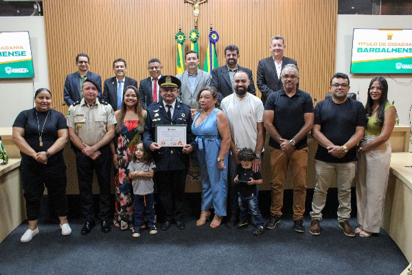 Na noite desta quinta-feira (23), a Câmara Municipal de Barbalha realizou uma sessão solene para a entrega do Título de Cidadão Barbalhense ao senhor Cristiano Silva Felipe, primeiro tenente da Polícia Militar, em reconhecimento aos relevantes serviços prestados ao município e à população barbalhense.